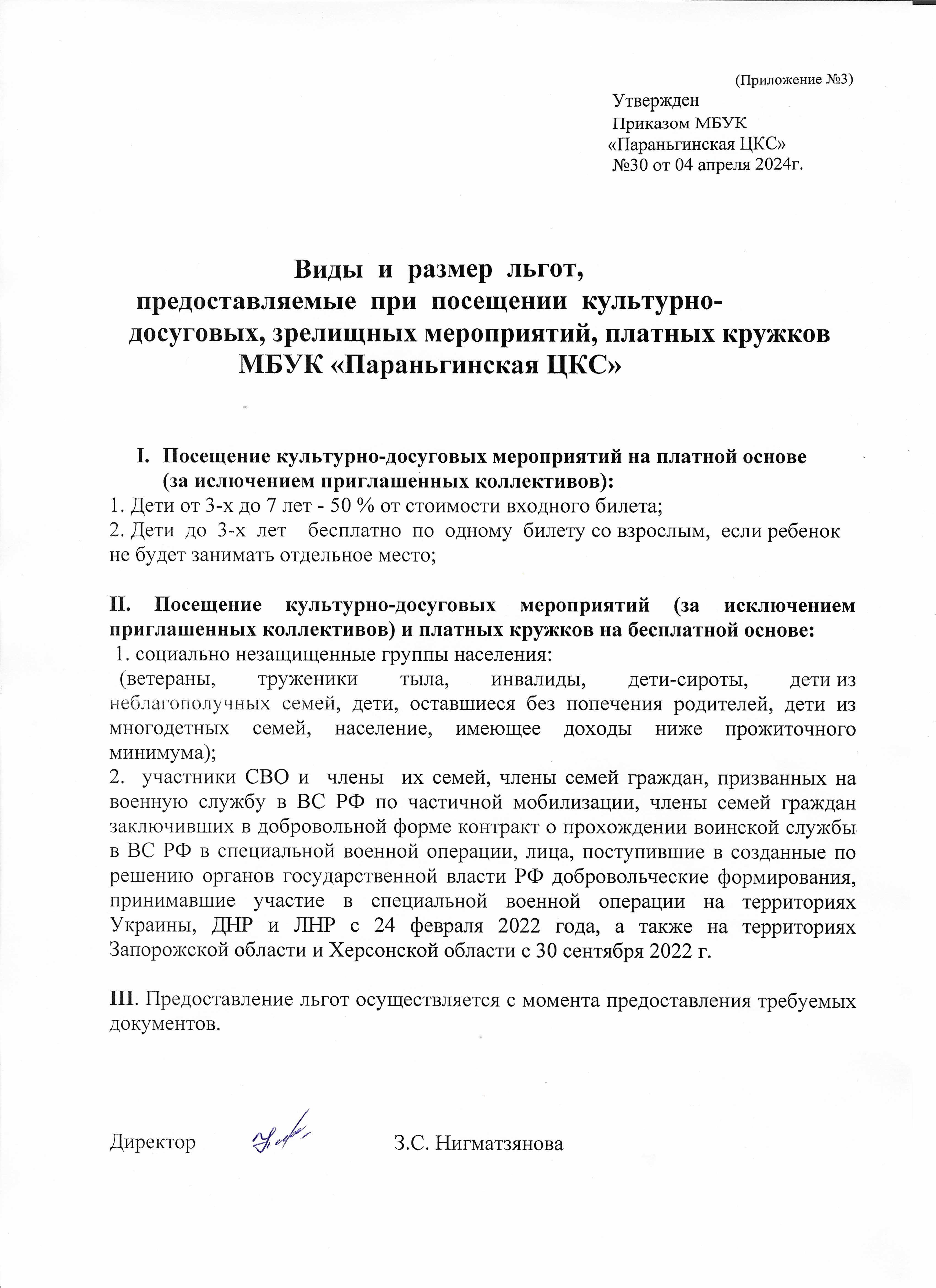 ПЕРЕЧЕНЬ платных услуг МБУК «Параньгинская ЦКС»